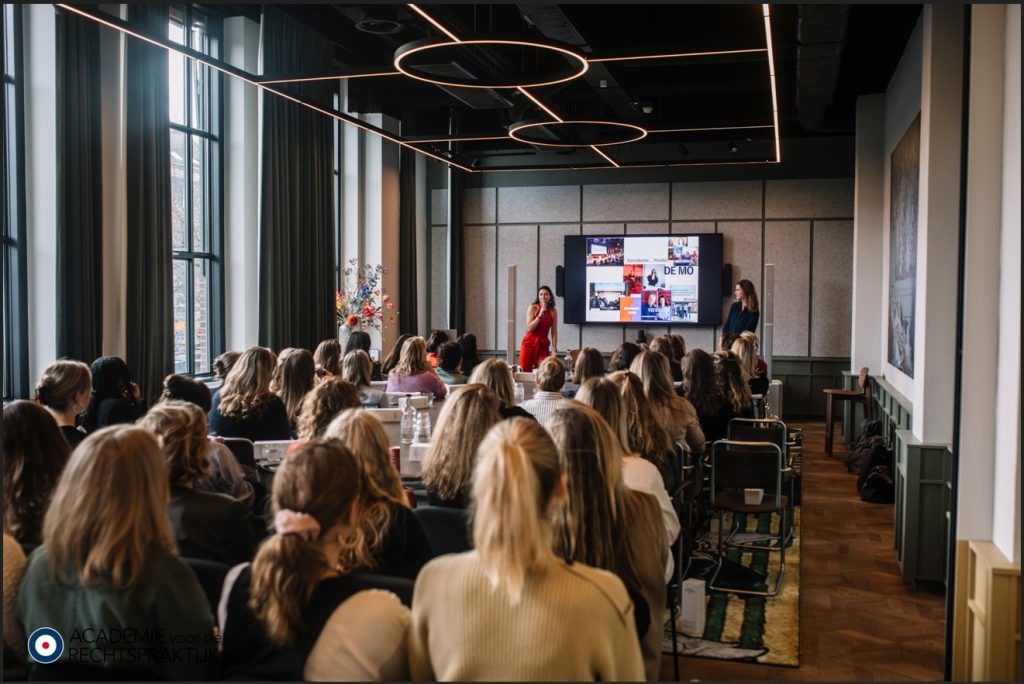 De dag werd afgesloten met een een panel van partners — onder wie Inge de Laat (Rutgers & Posch), Saloua Ouchan (Freshfields) en Anouk Rosielle (Dentons) — onder leiding van Noor Dings en Ilaha Museini. Het panel gaf deelnemers inzicht in de realiteit van zichtbaarheid binnen de advocatuur. Zij spraken openhartig over profilering, strategisch netwerken en de noodzaak om bewust ruimte in te nemen. Ook benadrukten zij dat vrouwen elkaar actief kunnen en moeten forwarden: elkaars naam noemen, kansen doorgeven, zichtbaarheid delen.
